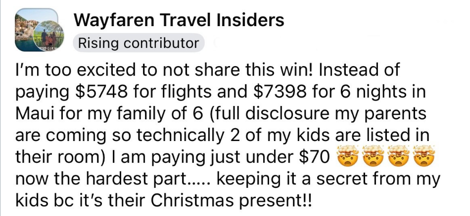 Being able to book (bucket list) family vacations stress free...all thanks to points and miles